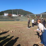 秋晴れの暖かい陽気の中、職場や家族または地域から12チームの参加があり、お揃いのTシャツやグッズで参戦するなどみなさん一致団結していました。ほとんどが初心者の方でしたが、試合を重ねるごとにどんどん上達し、熱気あふれる試合が繰り広げられました。途中の休憩時間はもぐもぐタイムで和気あいあいとした時間も♪みなさん楽しく競技に取り組んでいました。